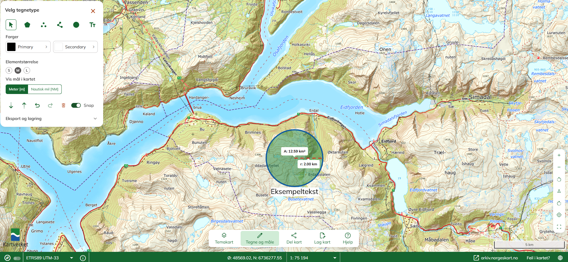 Med tegnefunksjonen i Norgeskart.no kan du for eksempel tegne inn en strekning i kartet, markere målet og sende lenke videre til andre.