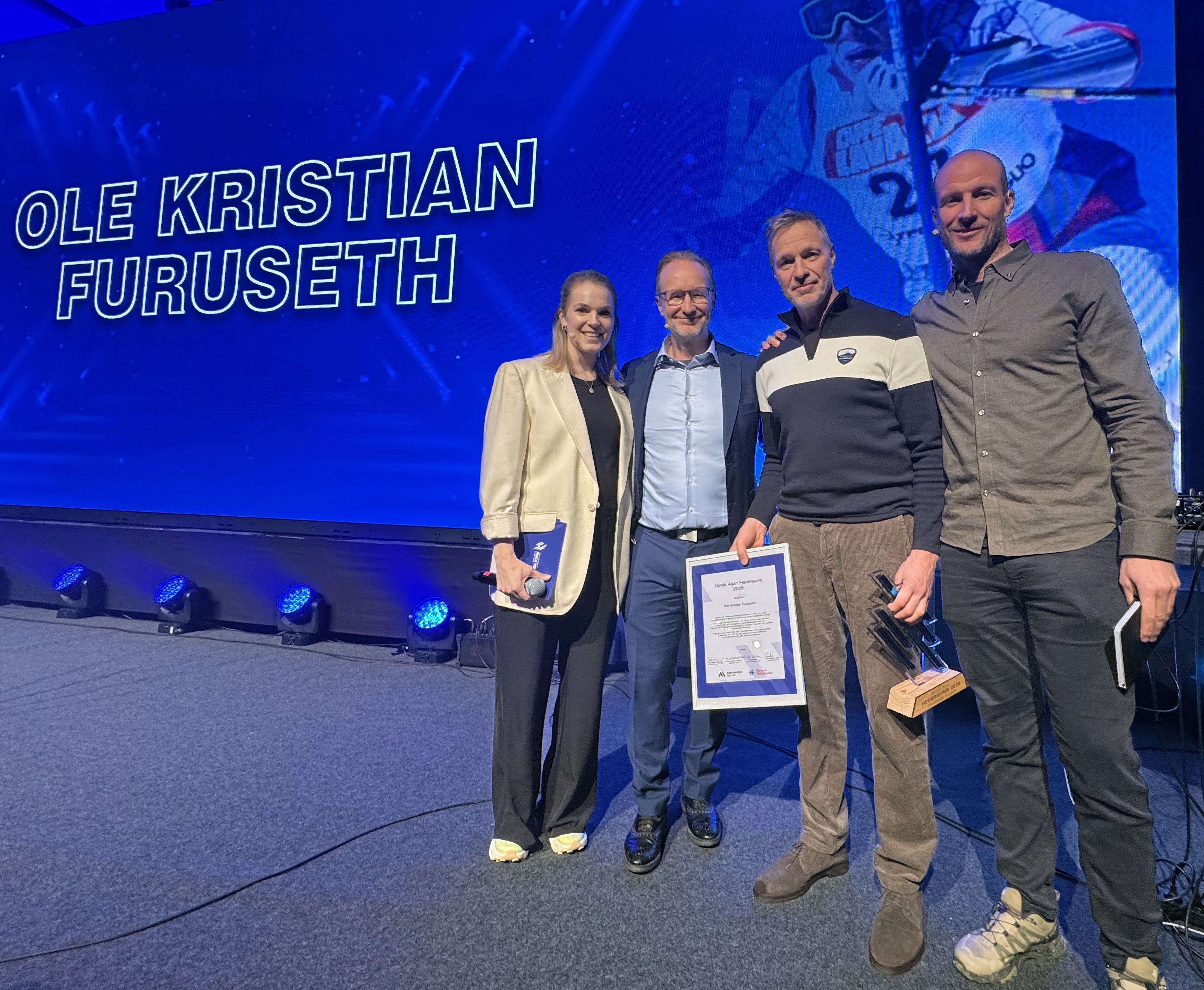 Ole Kristian Furuseth ble hedret med Norsk Alpinsports Hederspris på alpinaften under World Cup i Kvitfjell fredag kveld. Det var første gangen prisen er delt ut.