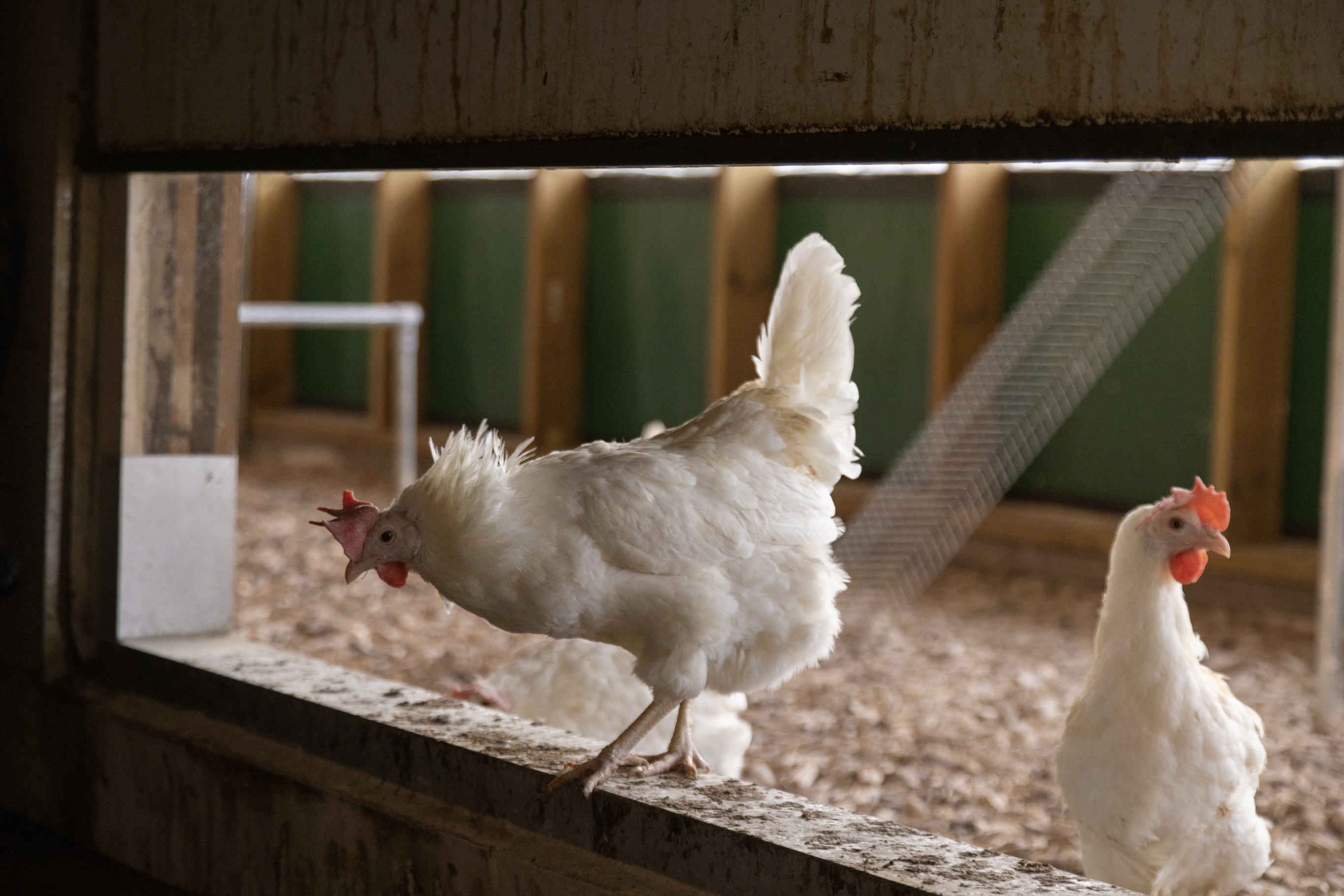 Fjøset er bygget større enn det som er vanlig i konvensjonell drift, og gir hønene mer plass, tilgang til vinterhage og etter hvert utegang i en inngjerdet luftegård.