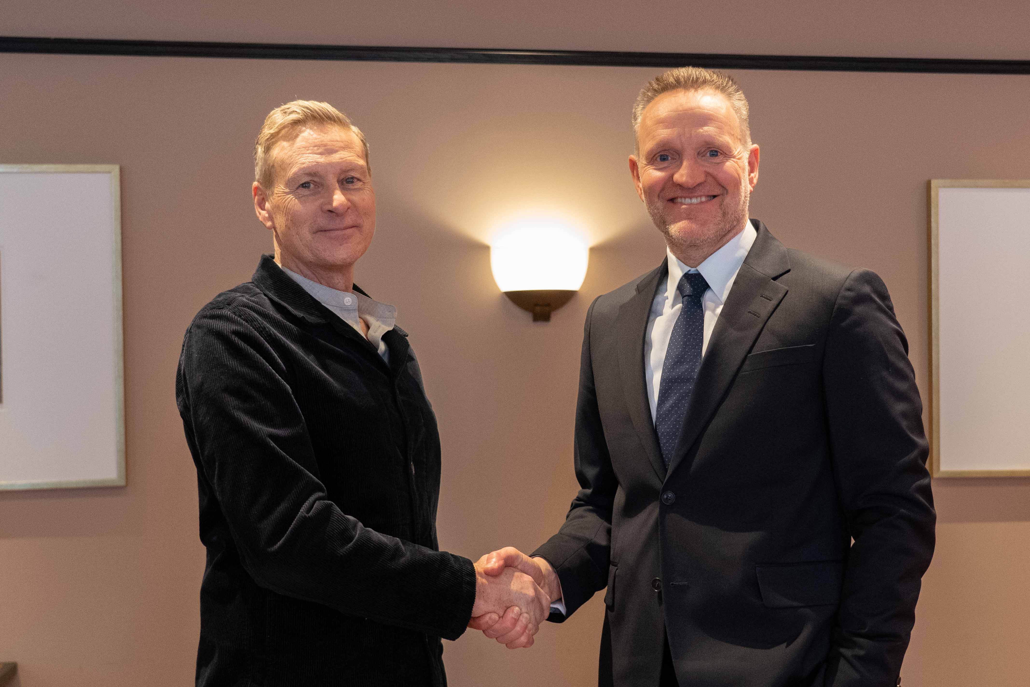 Arkitekt Reiulf Ramstad og Jan Erik Kjerpeseth, konsernsjef i Sparebanken Norge.