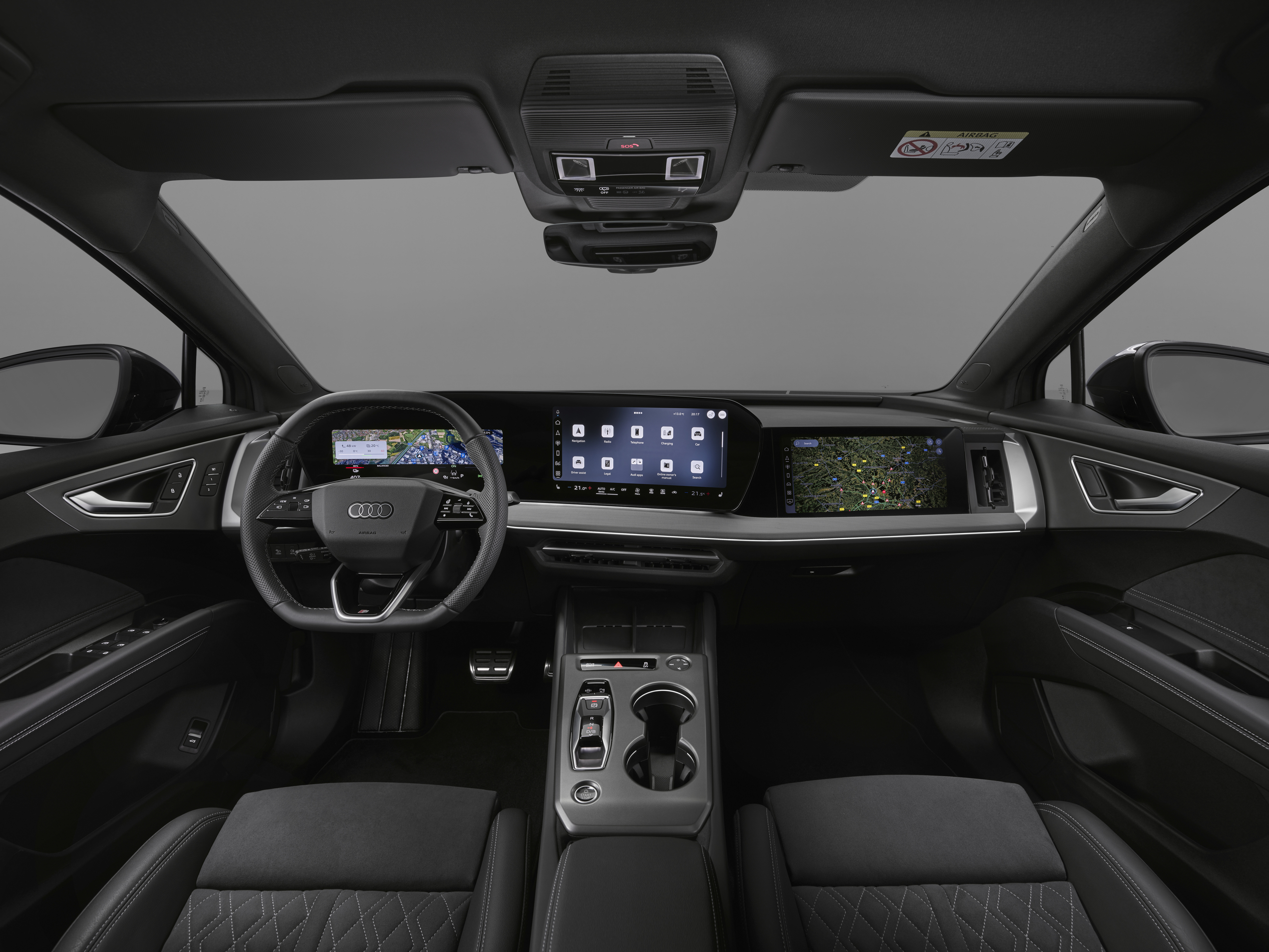 Det nye, digitale interiøret fås med tre skjermer. Sjåføren ser en 11,9-tommers skjerm foran seg, i midten er det et stort, 12,8-tommers MMI berøringsdisplay og for første gang i dette segmentet leveres også et stort passasjerdisplay som måler 12 tommer. Alt dette er helt nytt. Resultatet er den umiddelbare følelsen av et toppmoderne og høyst attraktivt interiør.