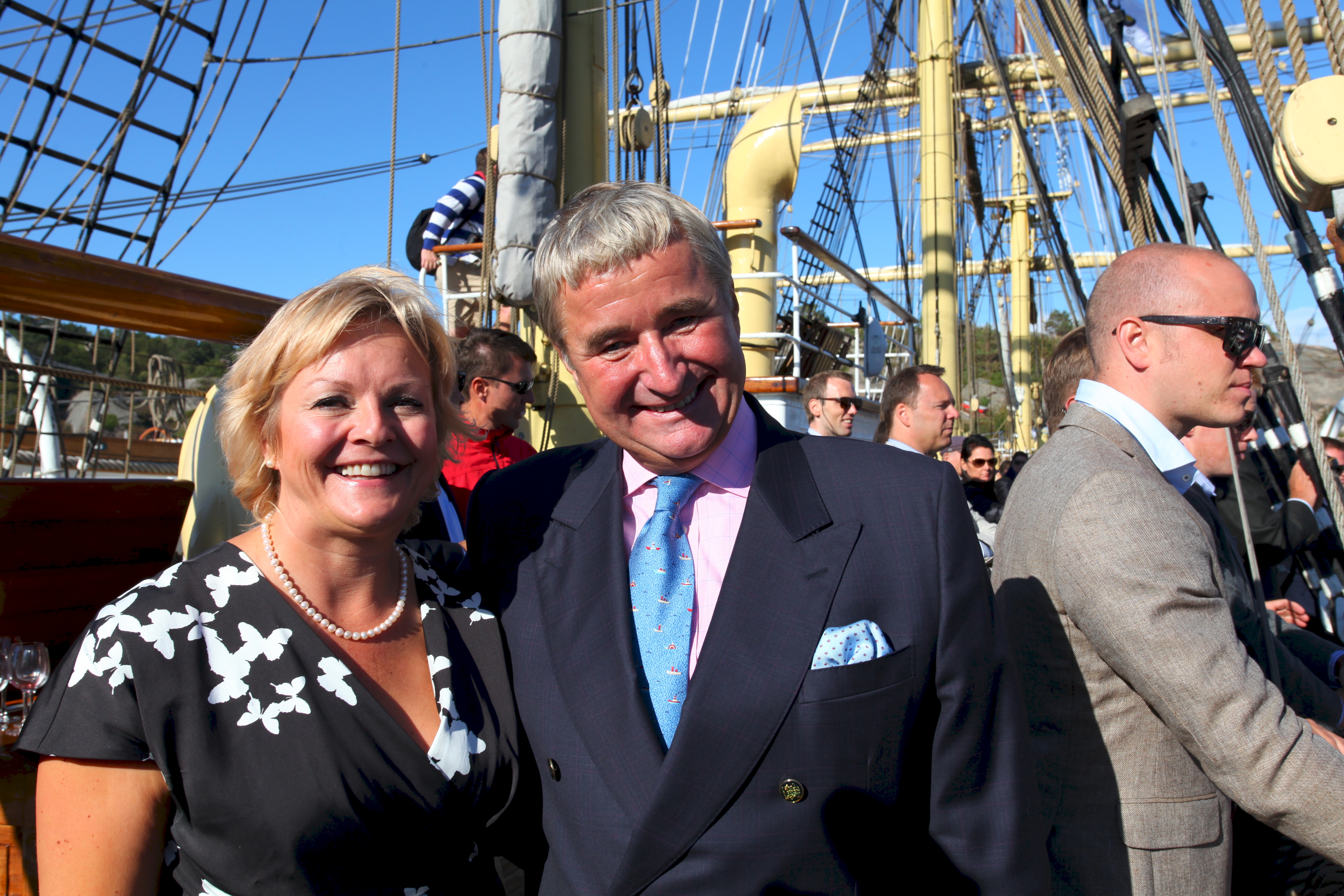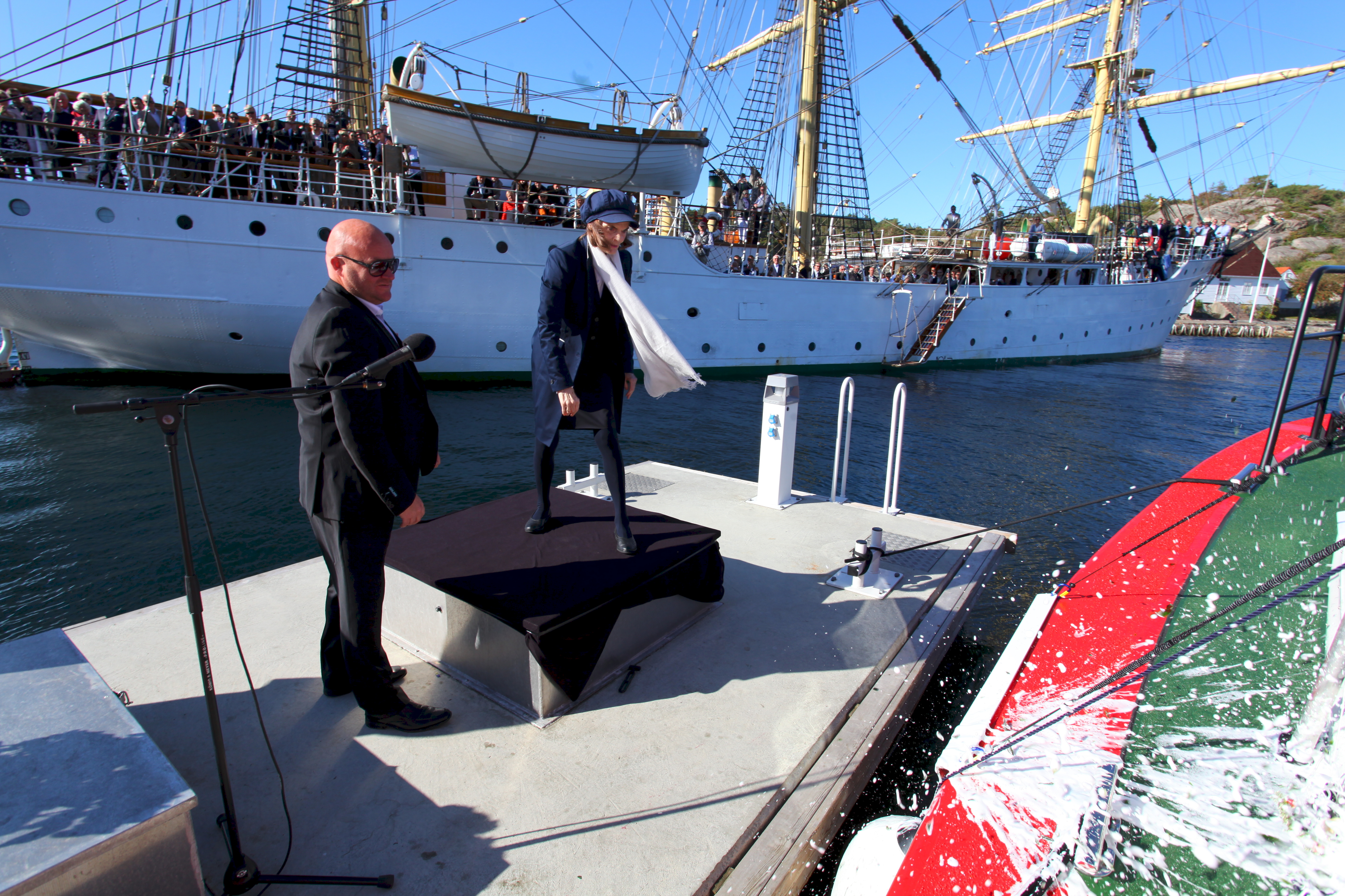 Investor Christen Sveaas hadde med seg inviterte gjester ombord i fullriggeren Sørlandet, og de fikk orkesterplass da gudmor Bärbel Rasmussen døpte RS 155 til "Bendt R. Rasmussen".