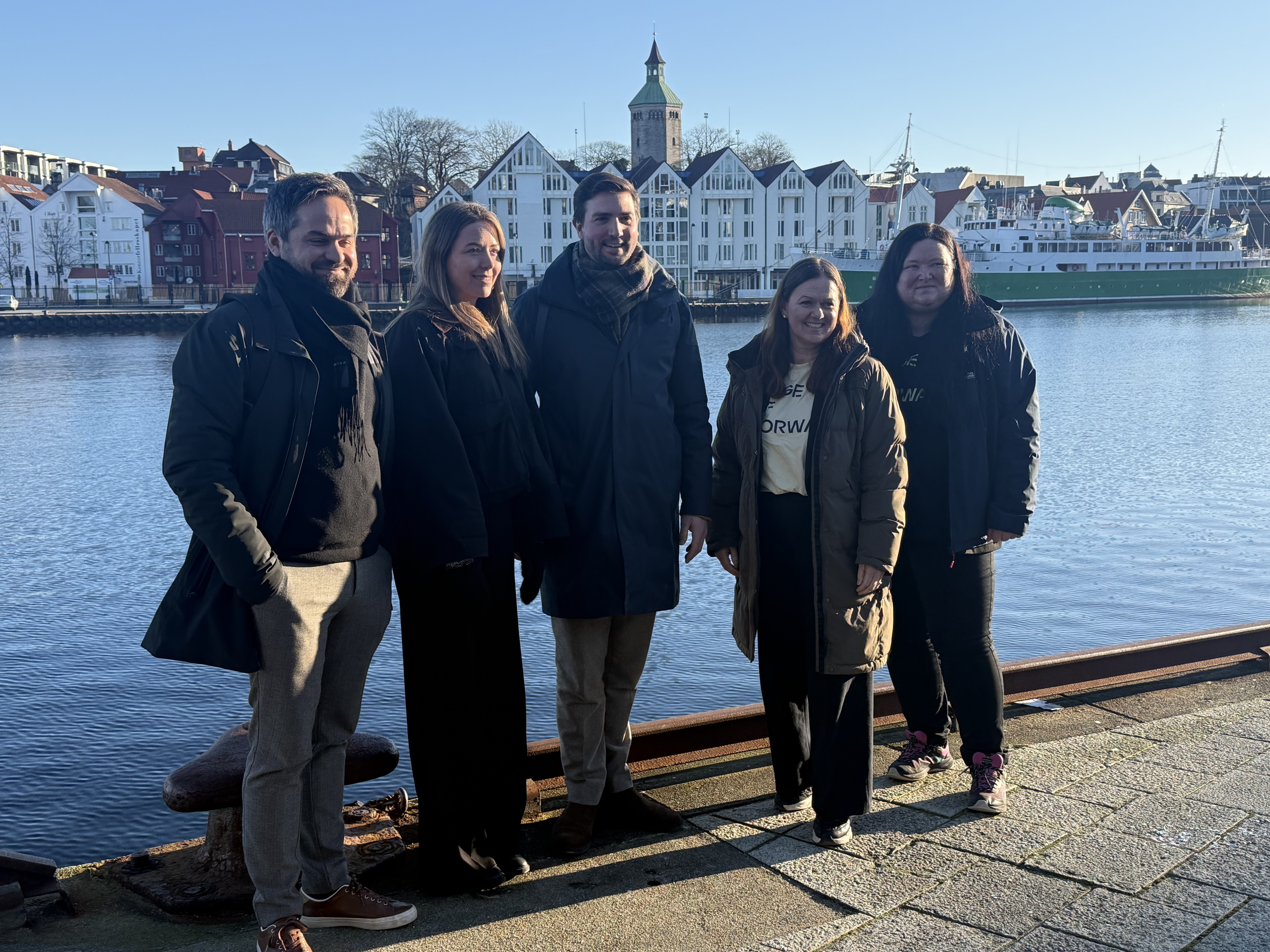 Kåre Rydningen, driftsdirektør i Brim Explorer, Agnes Arnadottir, daglig reder og gründer i Brim Explorer, Espen Hakkebo-Larsen, CTO og gründer i Brim Explorer, Anette Larsen, B2B-ansvarlig i Region Stavanger og Gunhild Vevik, kommunikasjonssjef i Region Stavanger